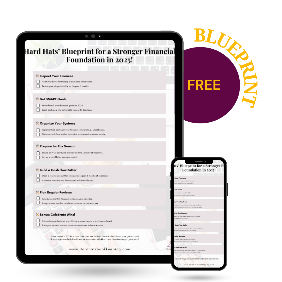 Your financial foundation is the key to a successful 2025. Ready to uncover hidden opportunities and strengthen your business? Schedule a Financial Inspection with Hard Hats Bookkeeping today!